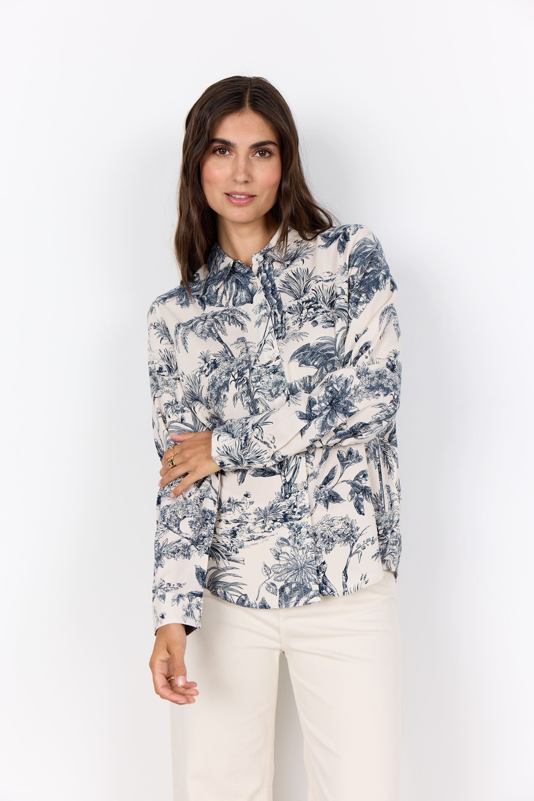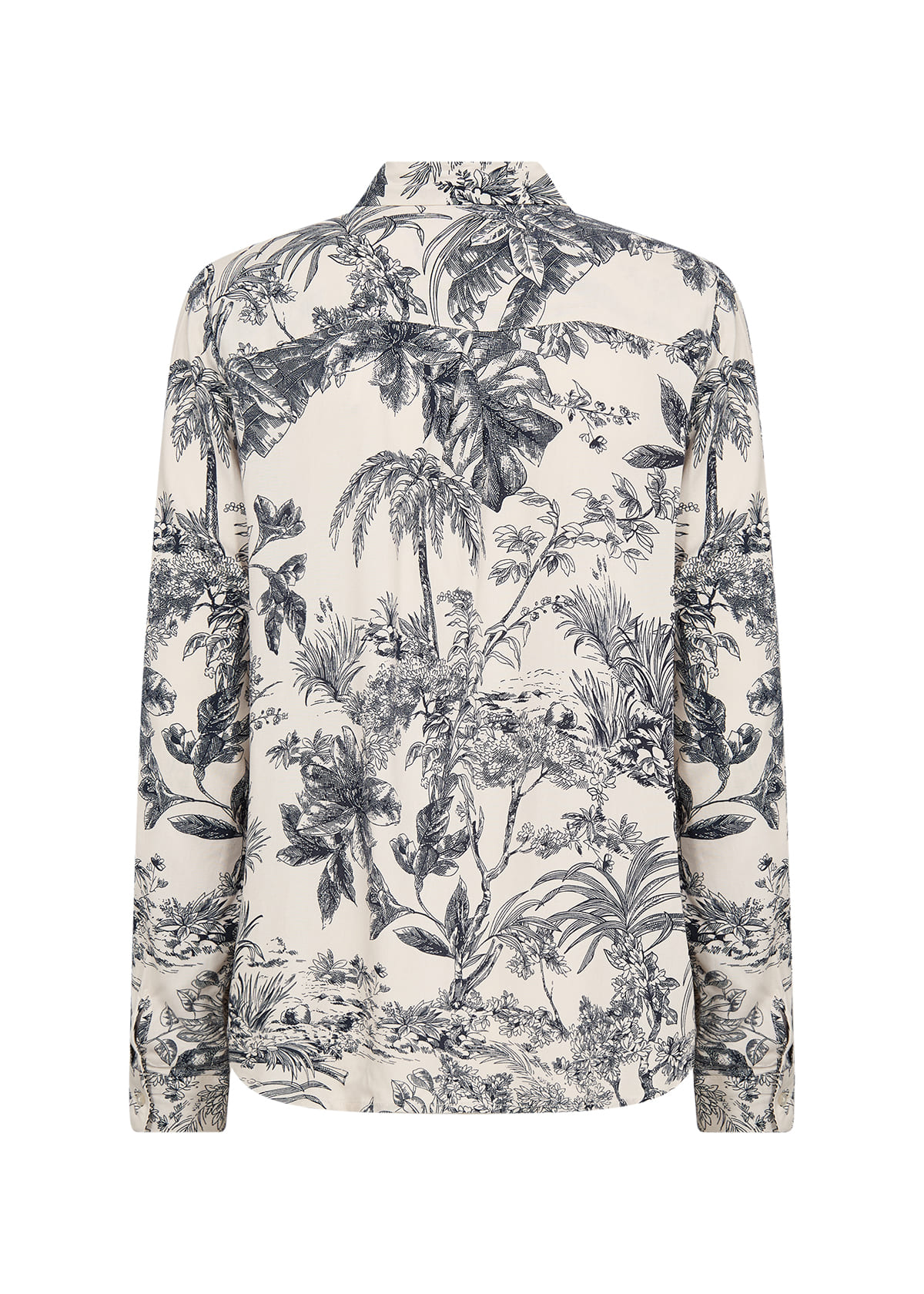 Superskön skjortblus i viskos. Skjortkrage med knäppning fram. Fint mönster i marin.