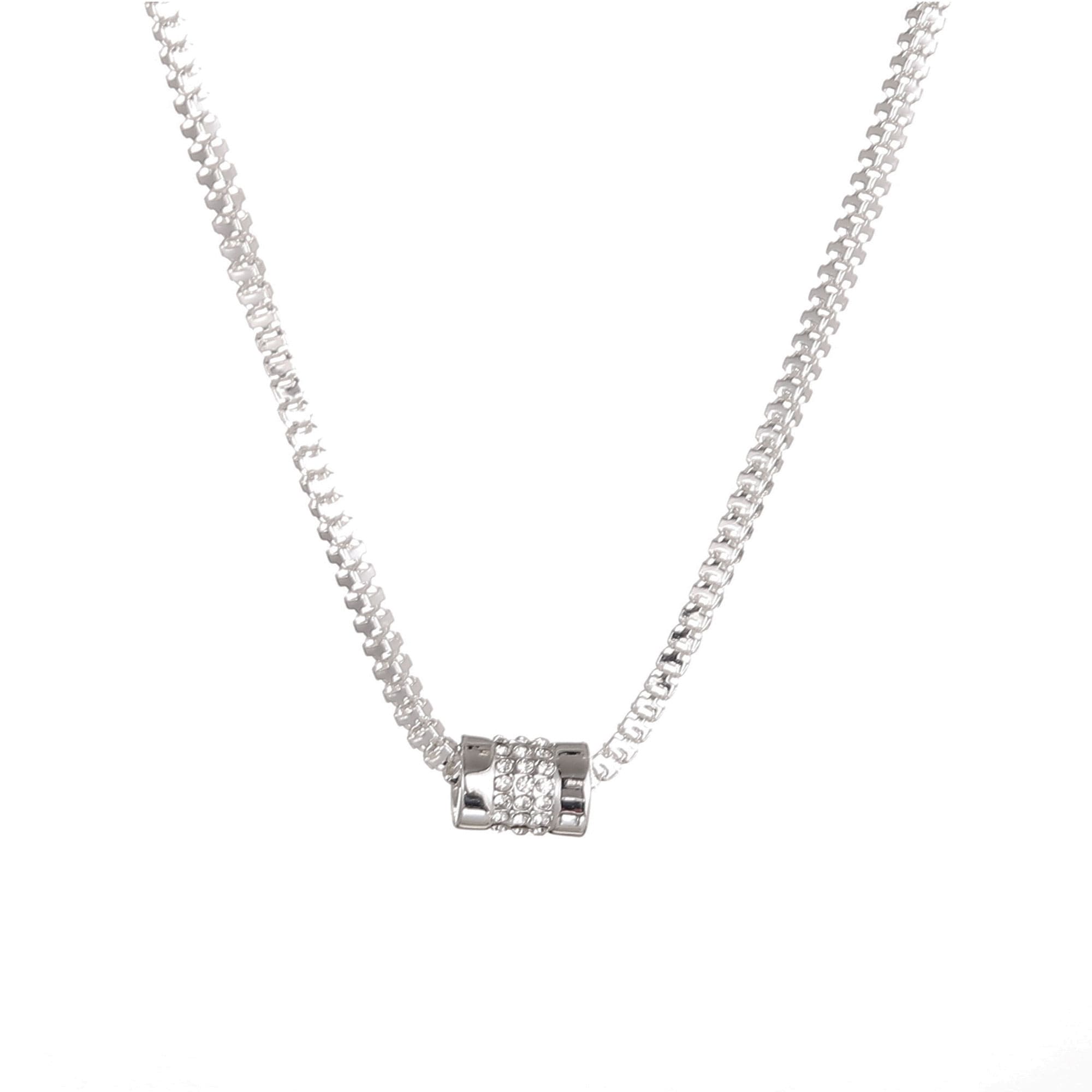 Ett elegant kort halsband med en tät, följsam kedja och en diskret mittdetalj dekorerad med glittrande stenar.