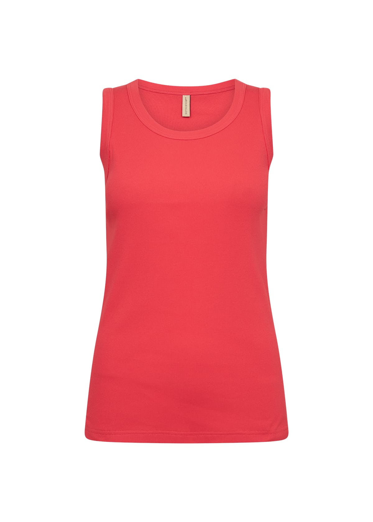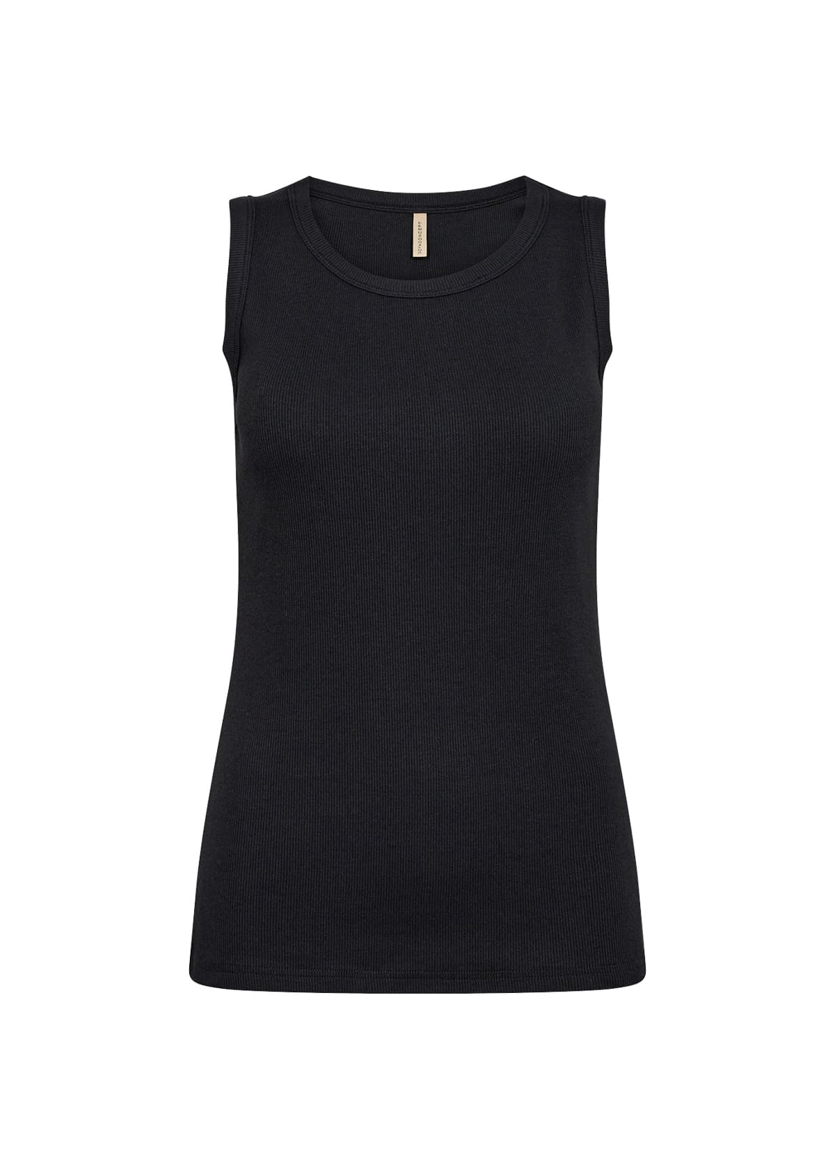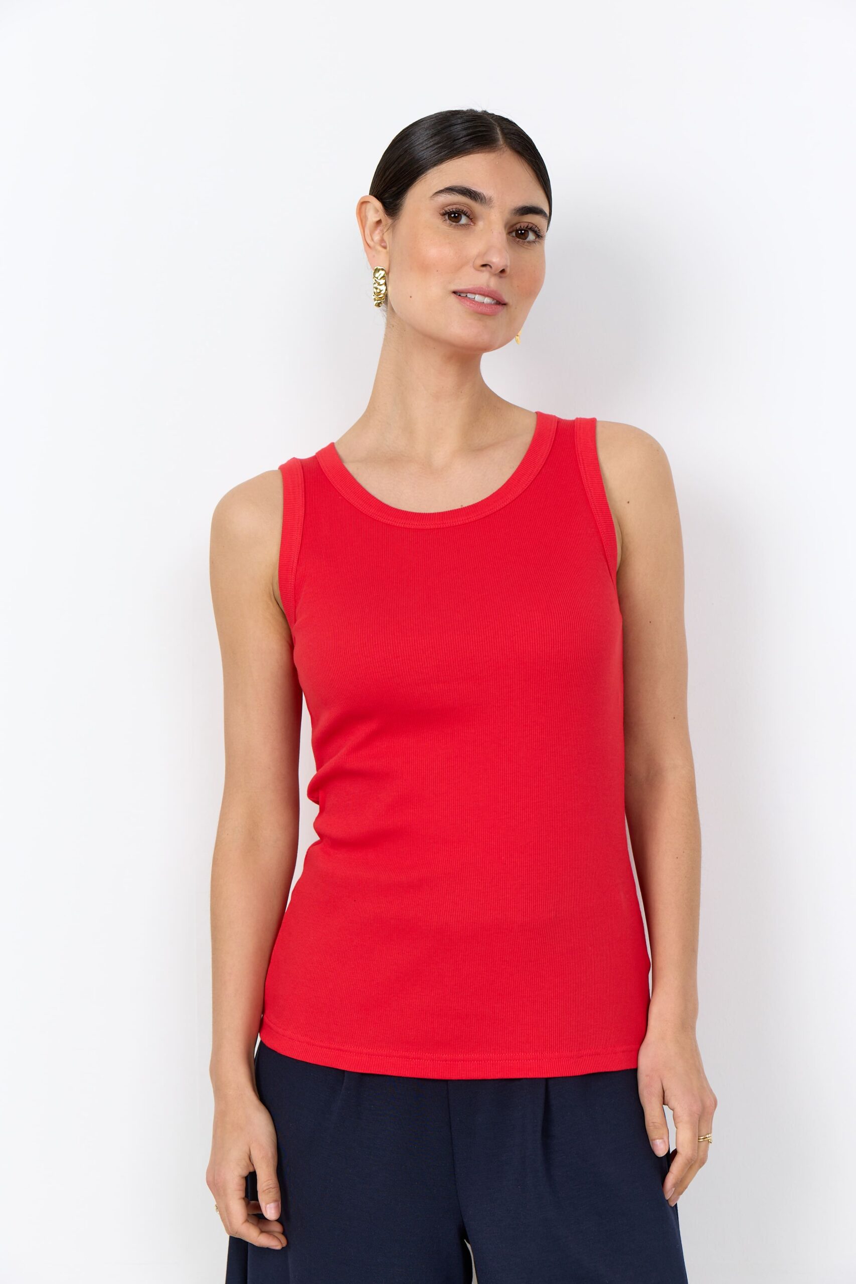 Ribbat linne i ekologisk bomull. Breda axelband, rund hals. Finns i 3 färger.