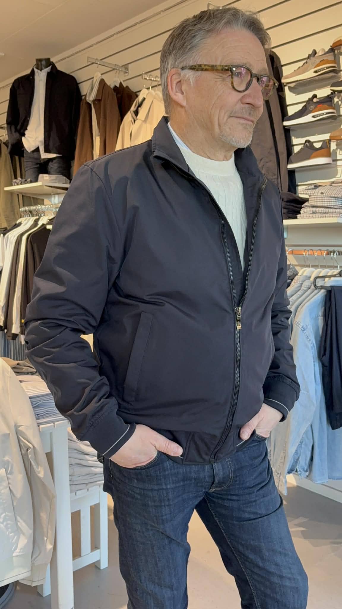 Jacka i 2 färger. Krage, dragkedja fram och 2 sidofickor med dragkedja.