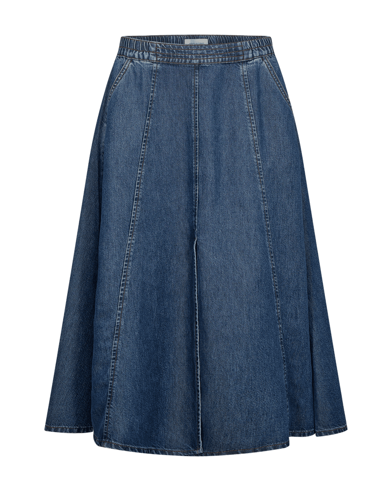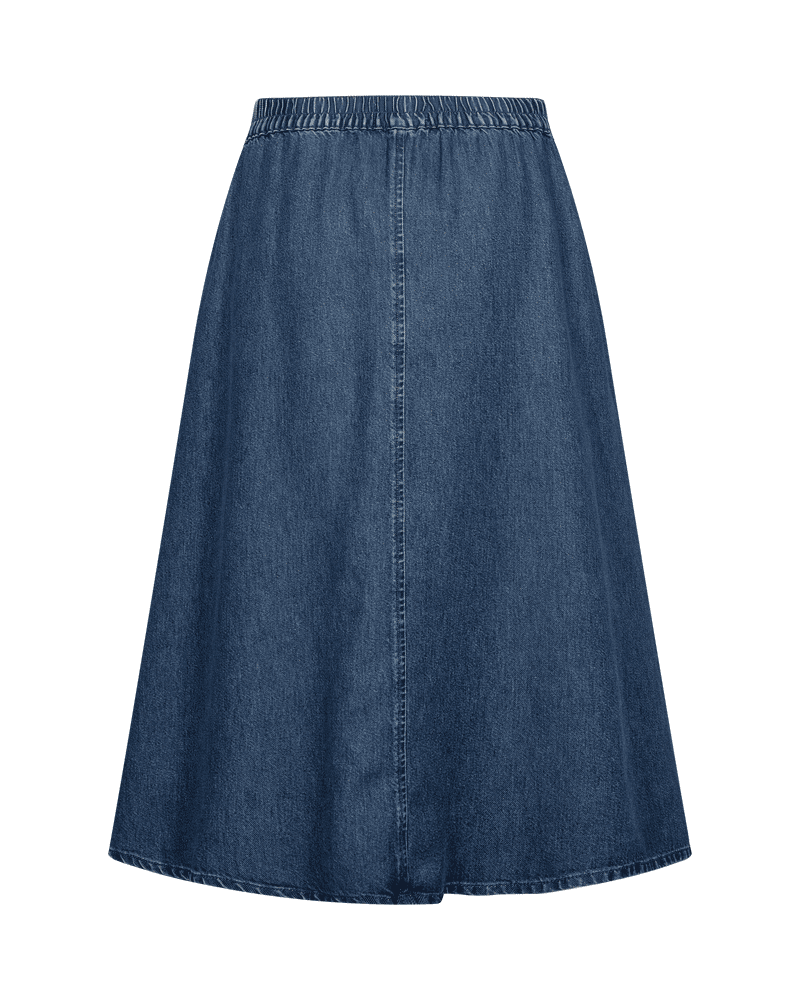 Kjol från Freequent i ett mjukt denimmaterial. Kjolen har en enkel silhuett med dragkedja fram, sidfickor, hög midja och A-formad passform.