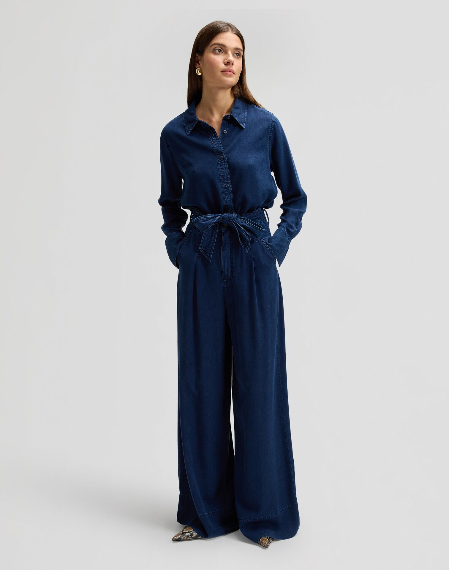 Vida byxor i mjuk tencel. Hög midja, lång byxlängd. Tillhörande skärp i midjan. Matcha med Classic shirt för ett set.
