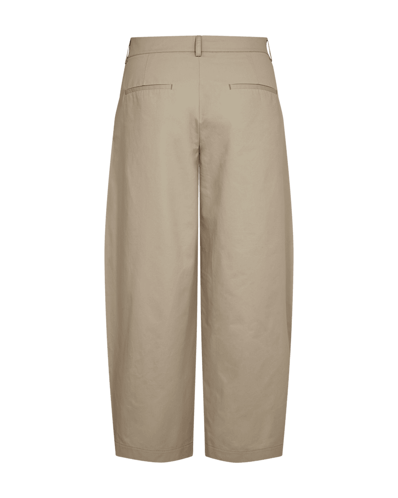 Byxor från Freequent i ett mjukt material. Byxorna har en enkel silhuett med dold dragkedja och knappknäppning, vida ben med vidd, sidfickor samt bakfickor. Barrel leg. Hellång.
