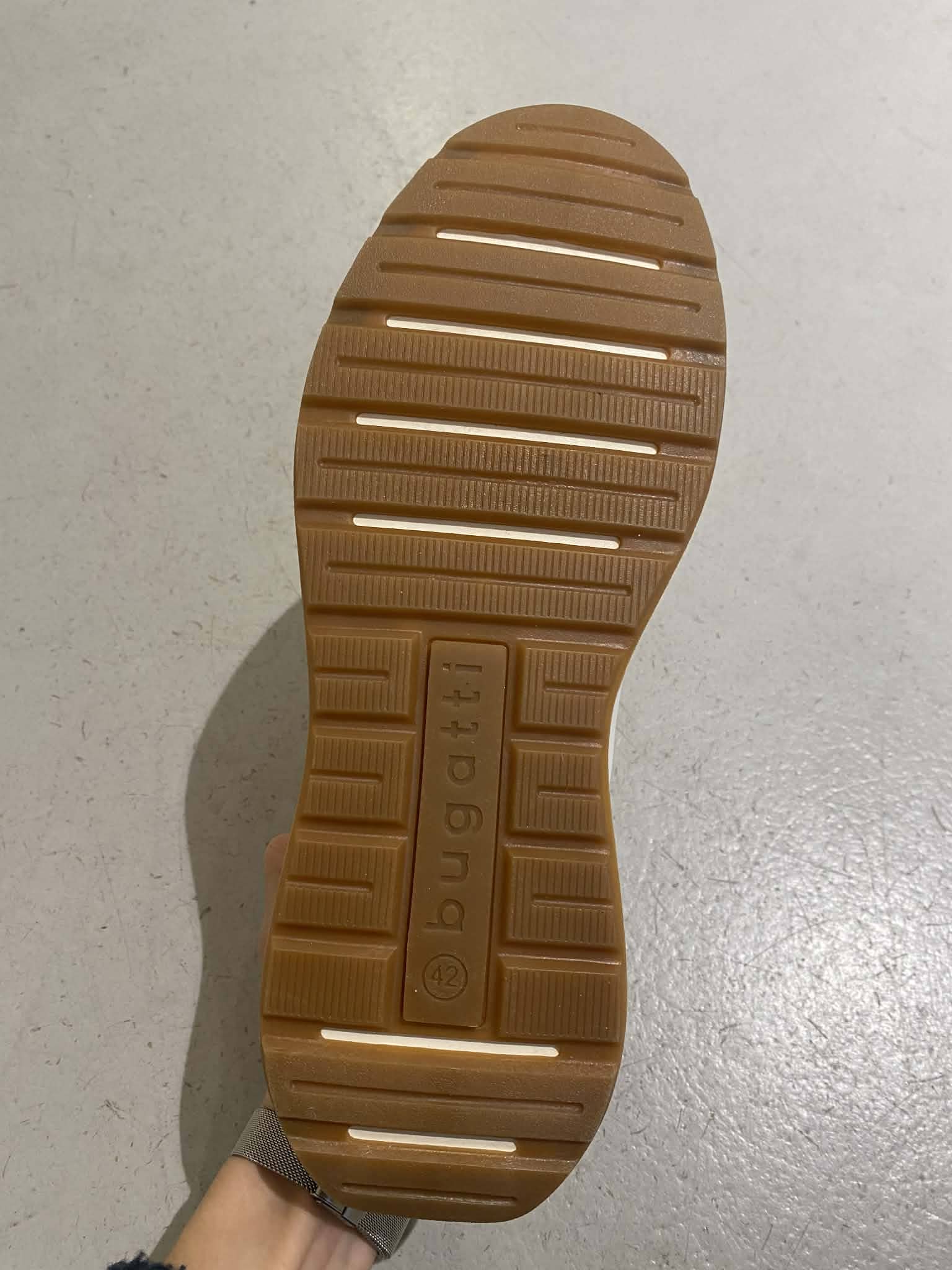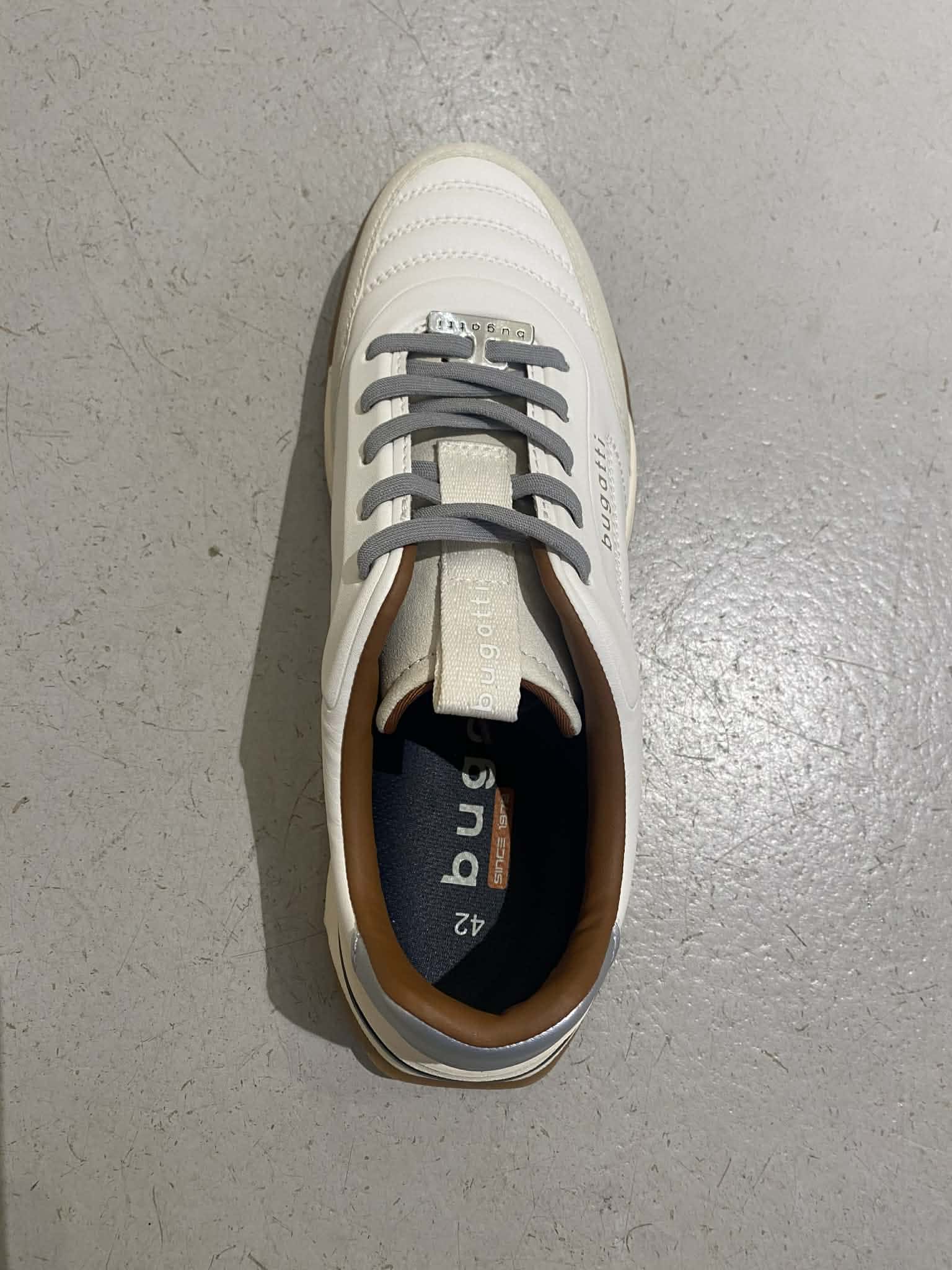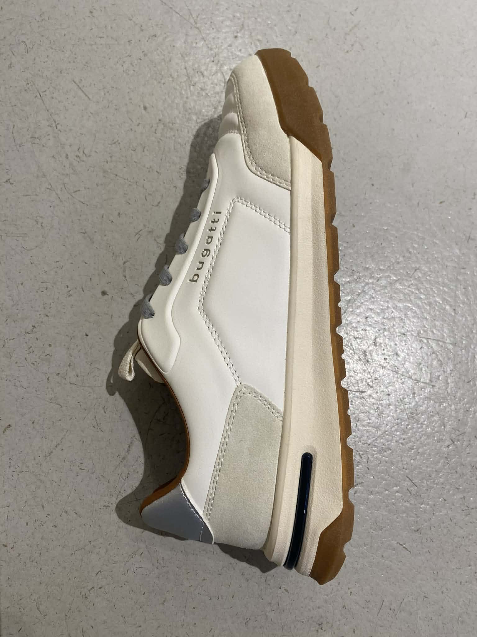 Vit sneakers från Bugatti. Knyt med snöre. Grå detaljer och brun insida.