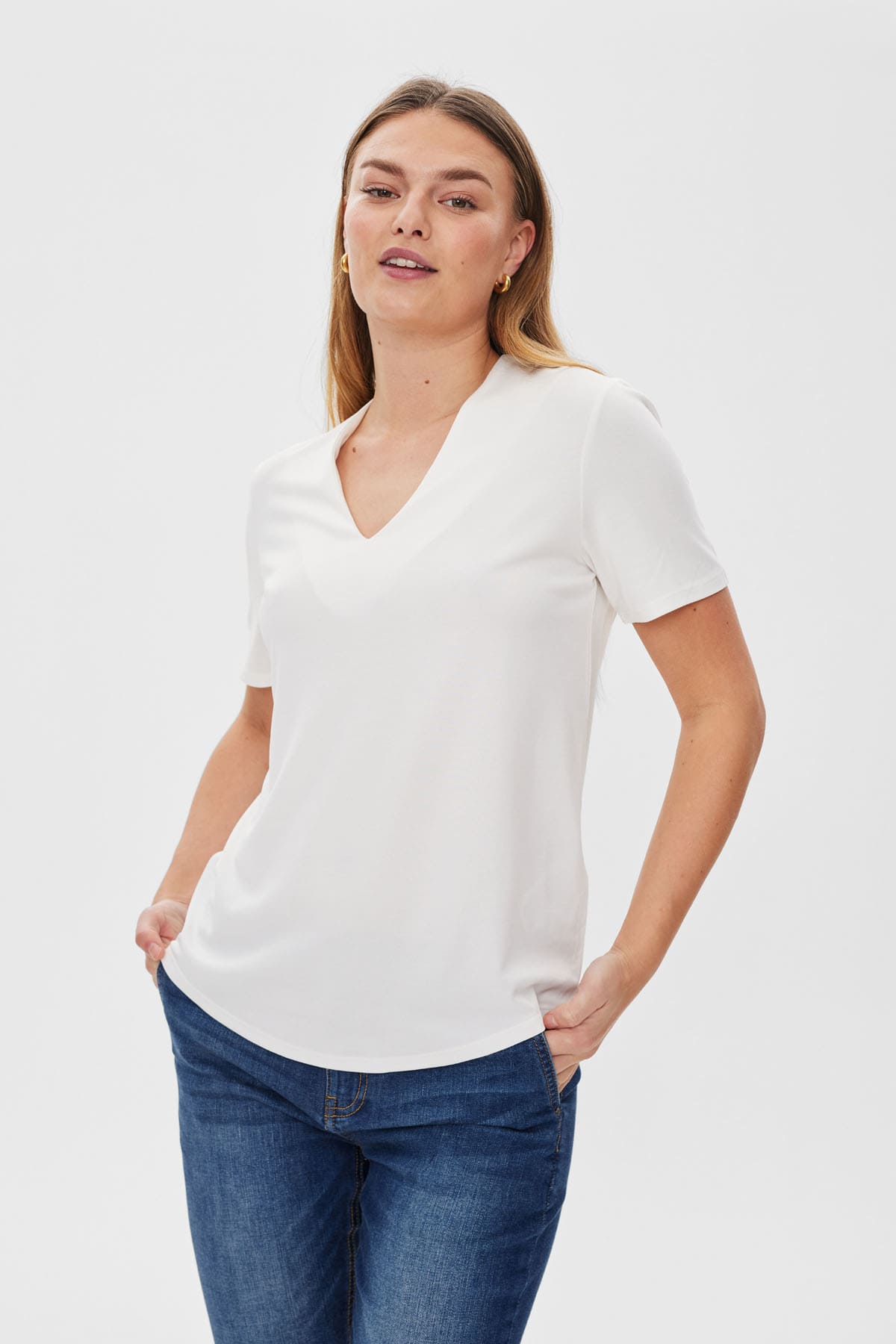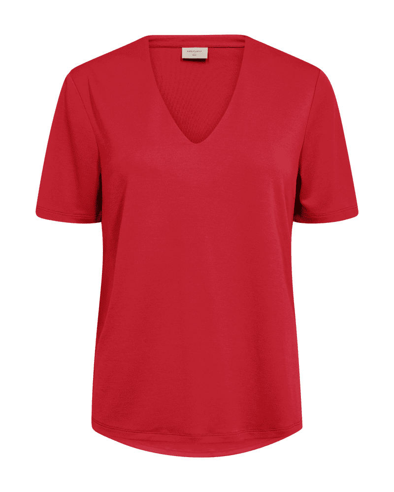 Topp från Freequent i ett mjukt material. Toppen har en enkel silhuett med V-ringning, korta ärmar och en elegant, lös passform.