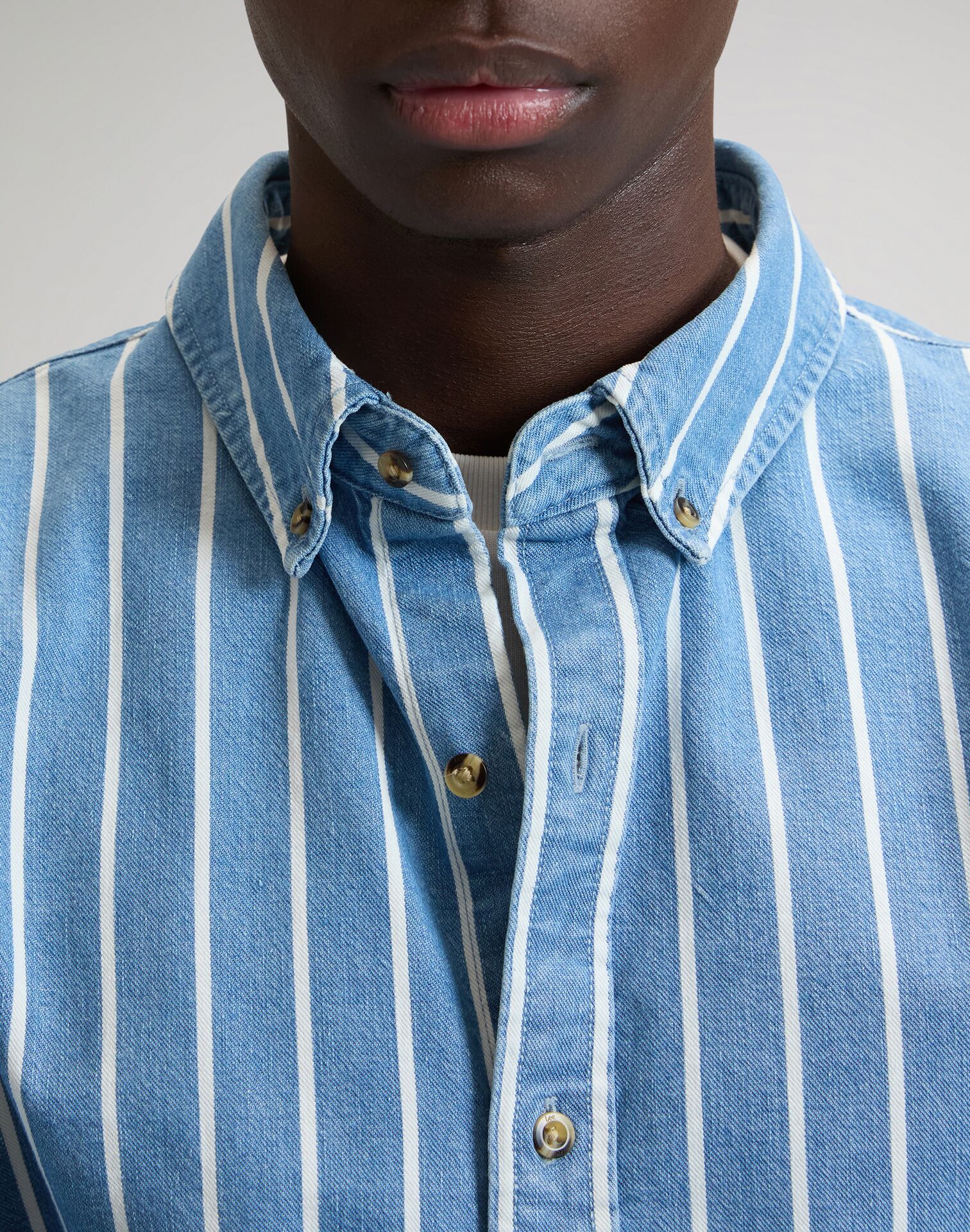 Randig overshirt i denim från Lee. Kraftigare tyg.